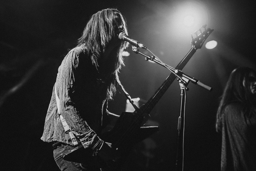 With an energy through the roof and merch lines that remained long as the night went on, the evening's headliner, Hulder, stormed on amidst blood red lights. The band's latest album, Verses In Oath, hit shelves this past February via 20 Buck Spin and proves to be as a grand in the live setting as its studio recording. Melodies soared, as did their tremolo-picked riffs and great sense of scope. Heads were swinging, bodies were moving, and one random crowd-surfer managed to hop on stage and come crashing down into the enthusiastic crowd.