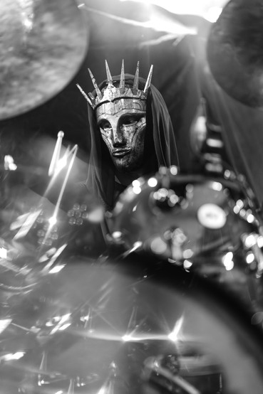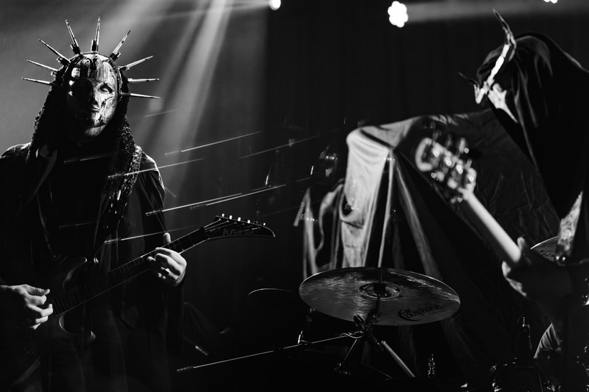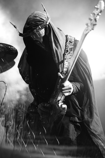 Adorned by their signature gold masks and robed attire, the trio put on a cinematic feat of blistering rage and elegance — two distinct qualities that coalesce under the Imperial Triumphant umbrella. The musicians are fluent in the complexity of their song arrangements, effortlessly flowing and mesmerizing the many in attendance. Though perplexing at times, the band are a rewarding watch that never ceases to amaze with each twist and jazzy turn through their varied setlist. Beyond their eclectic composition is the joyous aggression they display in their showmanship. They lock eyes with camera lenses underneath their horned masks, as noted below, proving focus amidst the madness.